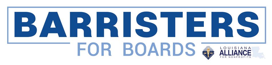 Barristers for Boards events begin with a one-hour CLE board training presented by the Louisiana Alliance for Nonprofits. Young lawyers will also hear about the challenges and opportunities unique to young lawyers serving on nonprofit boards.