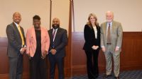 (Pictured L to R): Dara Gallion, 2L, Loyola University New Orleans College of Law, New Orleans, LA; Attylaka Follins, 3L, Loyola University New Orleans College of Law, New Orleans, LA; Hon. Omar K. Mason, Orleans Parish Civil District Court, Division E, New Orleans, LA; Hon. Tracy Flemings-Davillier, Orleans Criminal District Court, Section B, New Orleans, LA; Kennedy Hood, 2L, Loyola University New Orleans College of Law, New Orleans, LA; Phylicia Wright; 2L, Loyola University New Orleans College of Law, New Orleans, LA